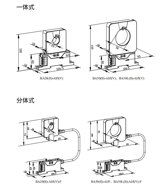 智能型BA系列電流傳感器應用電磁感應原理,對電網(wǎng)中的交流電流進行實時測量,采用恒流和線性補償技術,將其隔離變換為標準的直流信號輸出。DC24V或12V安全電壓供電,可廣泛用于工業(yè)自動化領域。 BA50L-AI為交流剩余電流互感器,主要檢測用電系統(tǒng)的漏電流,能隨時掌握電氣線路和設備的情況,防止因漏電而發(fā)生的火災等事故。