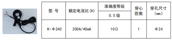 AKH-0.66 K-Φ24C 200A/40mA 開口電流互感器外形美觀,安裝、接線方便,主要用于電力運維及用電改造項目,一般輸出為小電