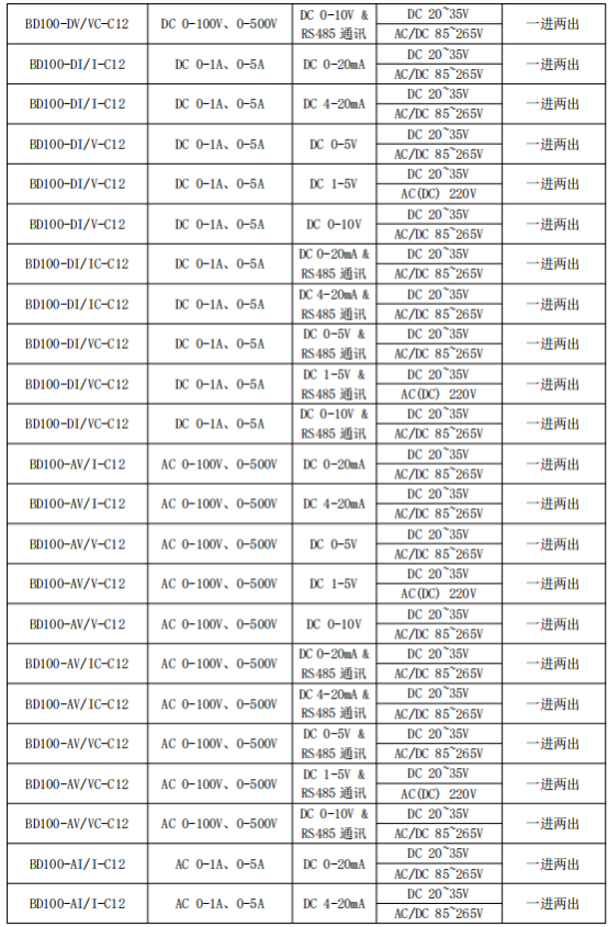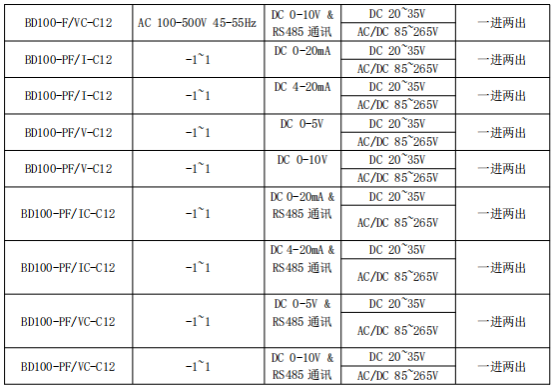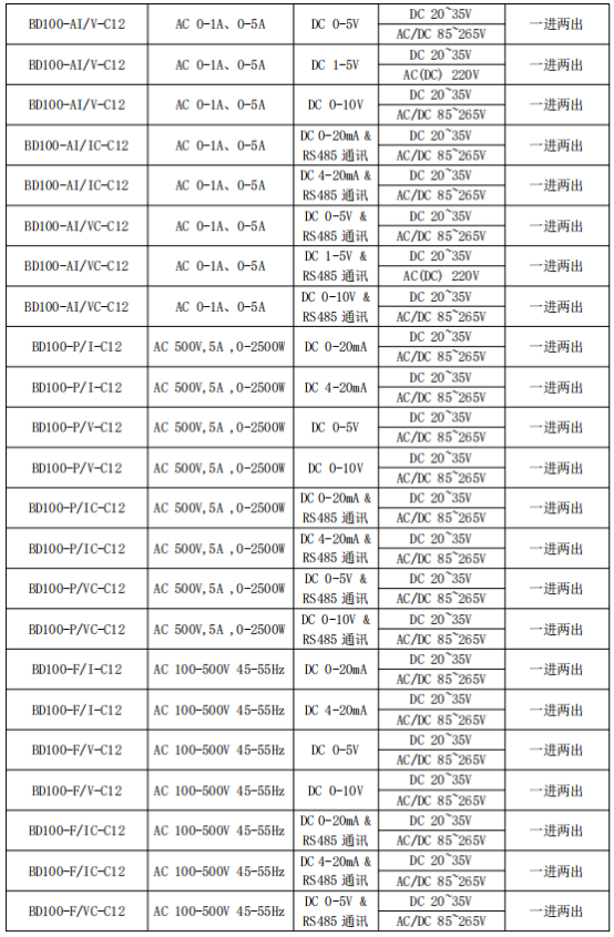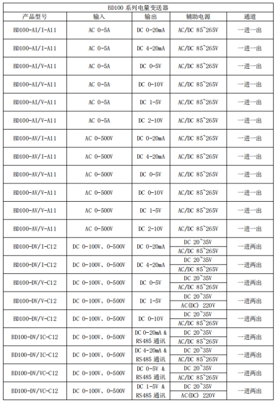 BD100 系列電力變送器是一種將電網(wǎng)中的電流、電壓電參量,經(jīng)隔離變送成線性的直流模擬信號或數(shù)字信號裝置。產(chǎn)品符合 GB/T13850-1998、IEC-688 標(biāo)準(zhǔn)。