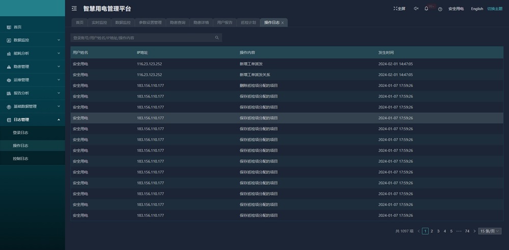 平臺(tái)記錄每一次用戶的登錄記錄和操作記錄。確保對(duì)設(shè)備的每一次操作都可進(jìn)行歷史跟蹤。