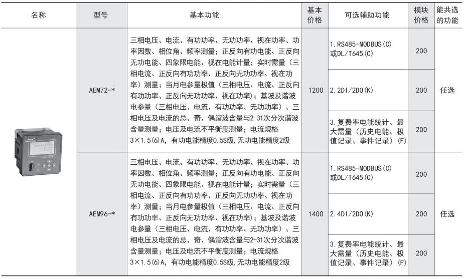 AEM系列三相嵌入式電能計(jì)量表是一款主要針對電力系統(tǒng)、工礦企業(yè)、公用設(shè)施的電能統(tǒng)計(jì)、管理需求而設(shè)計(jì)的智能電能表,集成三相電力參數(shù)測量及電能計(jì)量與考核管理,提供上24時、上31日以及上12月的電能數(shù)據(jù)統(tǒng)計(jì)。具有31次分次諧波與總諧波含量檢測,帶有開關(guān)量輸入和繼電器輸出可實(shí)現(xiàn)“遙信”和“遙控”功能,并具備報(bào)警輸出,可廣泛應(yīng)用于多種控制系統(tǒng)、SCADA系統(tǒng)和能源管理系統(tǒng)中。產(chǎn)品符合國家標(biāo)準(zhǔn)GB/T 17215.322-2008《第22部分∶0.2S級和0.5S級靜止式有功電能表》和協(xié)議MODBUS-RTU的要求。