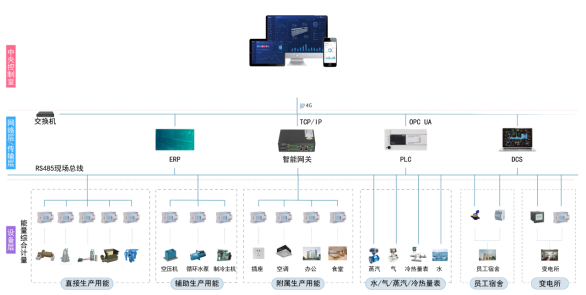 可根據(jù)企業(yè)管理特點架構(gòu)能源三級計量。