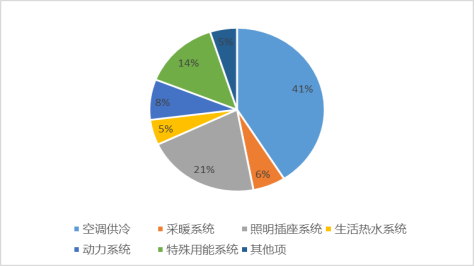 典型建筑行業(yè)主要用電設(shè)備耗電比例圖