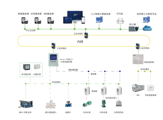 通過AI能效監(jiān)控箱與樓層監(jiān)控箱整體監(jiān)控冷熱源水系統(tǒng)與末端風(fēng)系統(tǒng)運行狀況;通過對天氣、建筑以及集中式空調(diào)系統(tǒng)負荷進行預(yù)測,將有助于超前實現(xiàn)對系統(tǒng)運行的干預(yù),指導(dǎo)用戶合理開關(guān)機,并對冷機進行群控及優(yōu)化,實現(xiàn)系統(tǒng)經(jīng)濟運行。