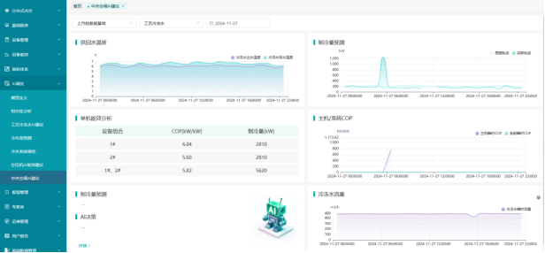 包括系統(tǒng)COP、系統(tǒng)單耗、主機COP、制冷量、系統(tǒng)今日電耗、組態(tài)監(jiān)控。