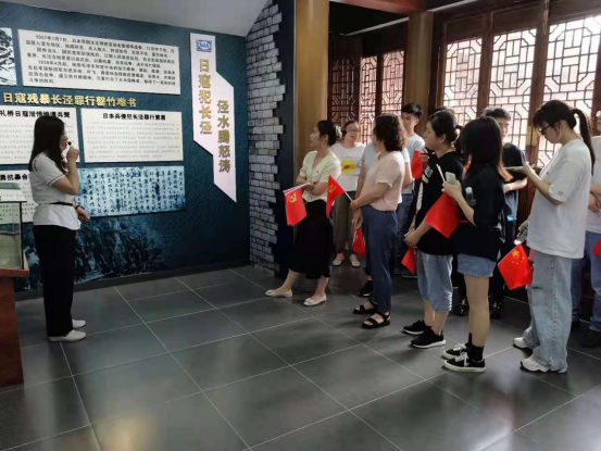 新四軍六師駐地舊址紀(jì)念館位于江陰市長涇鎮(zhèn)蒲市村蒲墅里紅色文化主題區(qū)。八年抗戰(zhàn)期間,譚震林帶領(lǐng)部隊駐扎蒲墅里,領(lǐng)導(dǎo)指揮方圓內(nèi)大小戰(zhàn)役上百次,取得了輝煌的成績。黨員同志通過參觀紀(jì)念館展品和展板、聆聽講解員的講述,進(jìn)一步了解了新四軍六師在江陰等蘇南地區(qū)的敵后抗日游擊戰(zhàn)爭為抗日戰(zhàn)爭勝利作出的重要貢獻(xiàn)。