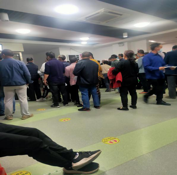 排了一個小時終于進來啦,但是醫(yī)生還要核對一下身份信息,也是認真負責啦,大家都很自覺的排隊登記。