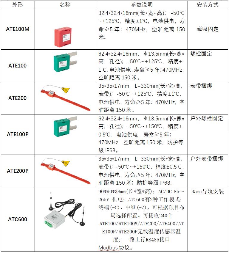 根據(jù)上述要求,故此選擇安科瑞的無(wú)線測(cè)溫產(chǎn)品如下表。