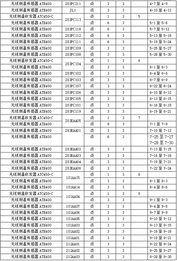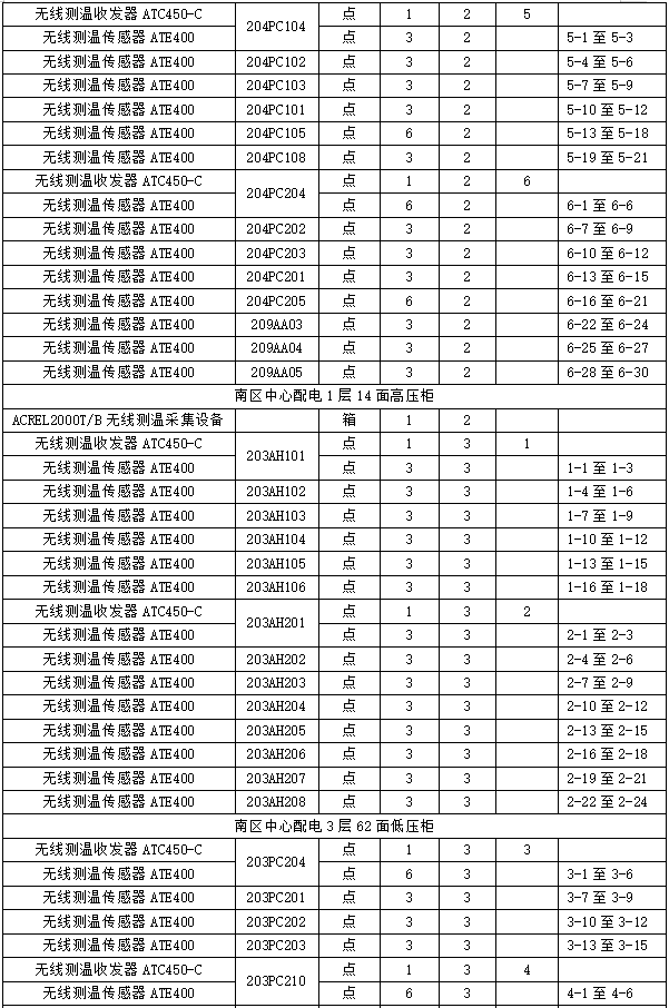 1)每面高壓柜出線電纜3點(diǎn)測溫;低壓進(jìn)線、無功補(bǔ)償柜母排3點(diǎn)測溫,低壓出線重要回路(1250A額定電流以上)每個(gè)回路出線電纜3點(diǎn)測溫。第三,該項(xiàng)目的無線測溫要求如下: