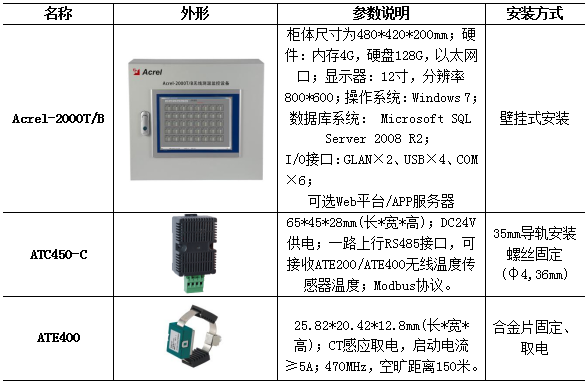 根據(jù)上述要求,故此選擇安科瑞的智能操控裝置及無線測溫產(chǎn)品如下表。