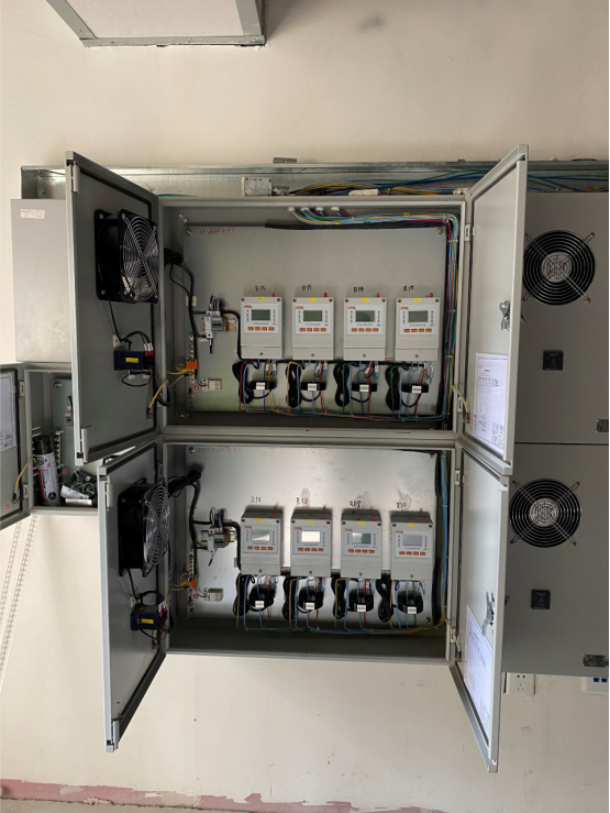 如果安裝位置有限,需要集中采集數(shù)據(jù)和集中管理,電氣防火限流式保護器也可以集中安裝于單獨配電柜中,再引出配電回路至每個充電樁,如下圖所示。