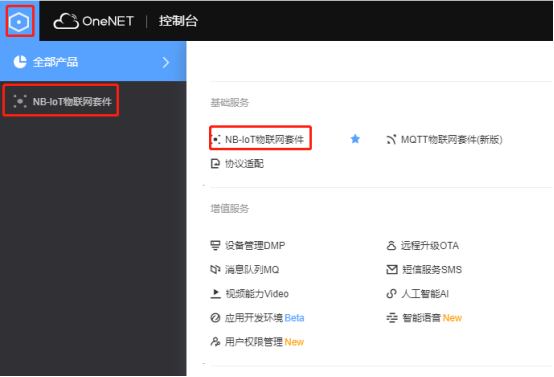 1. 進入平臺開發(fā)者中心的NB-IOT物聯(lián)網套件
