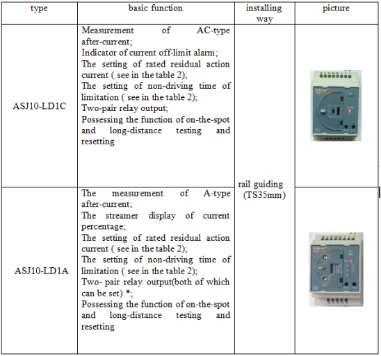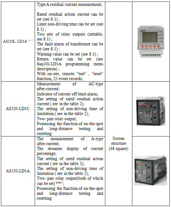 Note 3:ASJ10L-LD1A rated residual action current I N is 10mA-30A continuously adjustable;