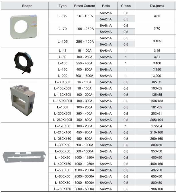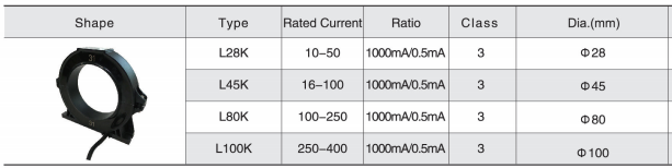 4.剩余電流互感器選型 Model Selection of Residual Current Relay