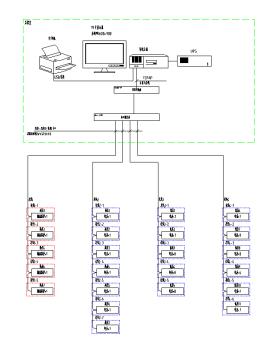 系統(tǒng)通訊結(jié)構(gòu)示意圖,主要顯示系統(tǒng)的組網(wǎng)結(jié)構(gòu),系統(tǒng)采用分層分布式結(jié)構(gòu),同時(shí)監(jiān)測(cè)間隔層設(shè)備的通信狀態(tài)。紅色表示通訊正常,綠色表示通訊故障。見(jiàn)圖(4)。