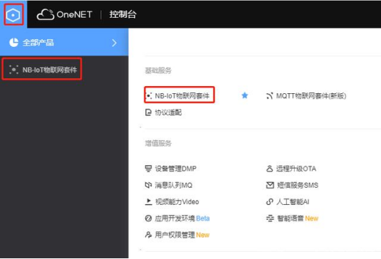進(jìn)入平臺(tái)開發(fā)者中心的NB-IOT物聯(lián)網(wǎng)套件