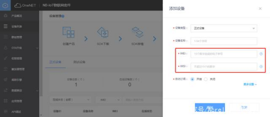 When adding equipment, the IMEI and IMSI numbers used when adding equipment can be obtained at the instrument end.