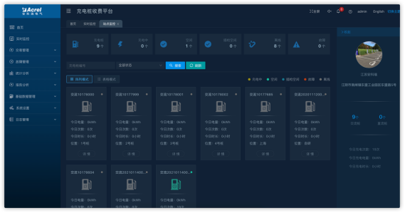 可以按站點名稱進行篩選,顯示站點詳情、充電槍列表、統(tǒng)計訂單信息、故障記錄,點擊某個充電槍編號后在進入充電槍監(jiān)控頁面