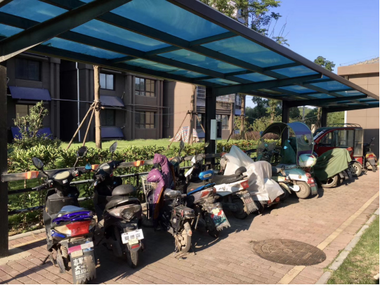 電動自行車21輛,每天充一次電,一次充電至少4小時。
