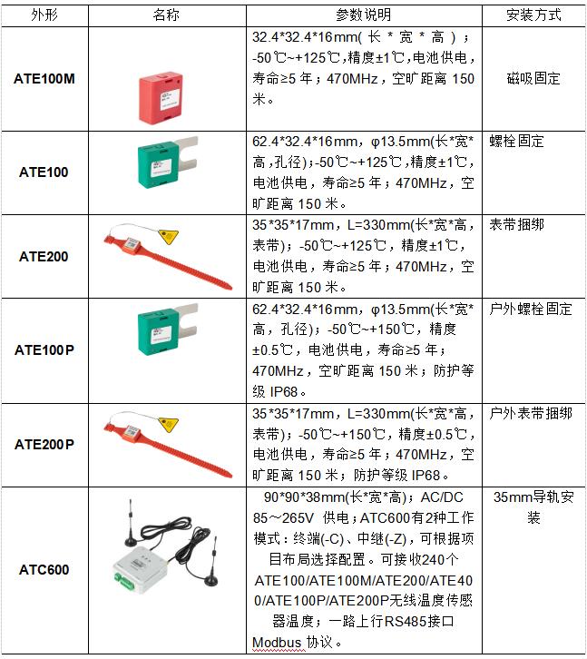 根據(jù)上述要求,故此選擇安科瑞的無線測(cè)溫產(chǎn)品如下表。