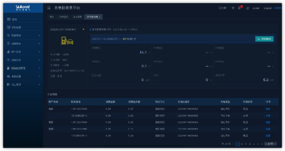 ④充電站監(jiān)控:可以按站點名稱進行篩選,顯示站點詳情、充電槍列表、統(tǒng)計訂單信息、故障記錄