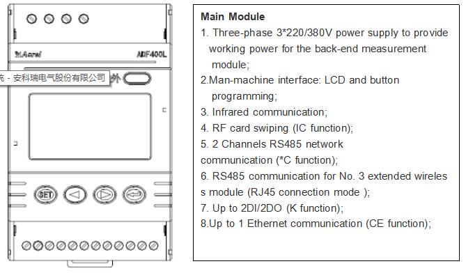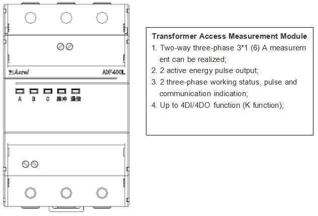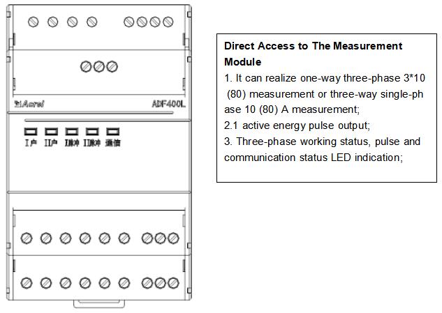 ADF400L Multi Circuits Energy Meter can achieve up to 12 three-phase or 36 single-phase direct access measurement or 12 three-phase mutual inductor access measurement, a hybrid of direct access and mutual inductor access through module combination measurement method.