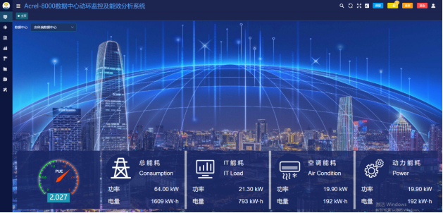 6.3.1 主頁查看:主頁展示當前數(shù)據(jù)中心PUE值,總能耗,IT能耗,空調(diào)能耗,及其他能耗。