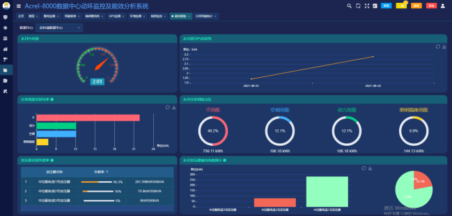 1)通過對數(shù)據(jù)中心能效分類并排名,通過圖表形式展示,直觀地展示數(shù)據(jù)中心各項用能情況,以及當月PUE日曲線圖。